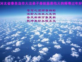无量众生被救度 师恩浩荡满苍宇 欲谢洪恩语难诉 渺渺尘埃有心语 山东莱州一家大法弟子敬上 双城市大法弟子给慈悲伟大的师父拜年!师父新年好!