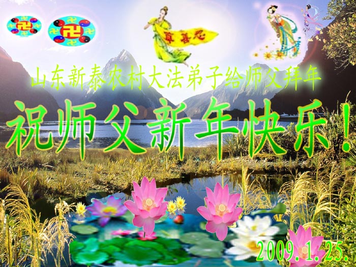 【明慧网二零零九年一月二十五日】 山东新泰农村大法弟子给师父拜年!祝师父新年快乐!
