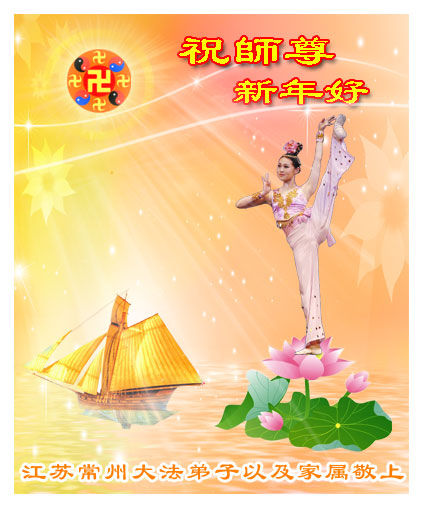 江苏常州大法弟子以及家属向伟大慈悲的师尊问好:师尊新年好!