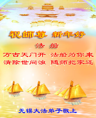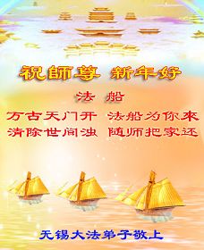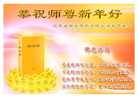 我们也是遍地花朵中的一朵,多人修炼,即暂时没修炼的也都很支持大法,相信大法的美好。在过去的几年里,我们为救度众生做了应该做的,在今后不多时间里,请师尊放心,我们会更精進,更好的做好三件事,发挥小花朵的更大作用,救度更多有缘生命。再一次祝师尊新年快乐! 皖北全家大法弟子 江苏无锡市、江阴市大法弟子向师父拜年!