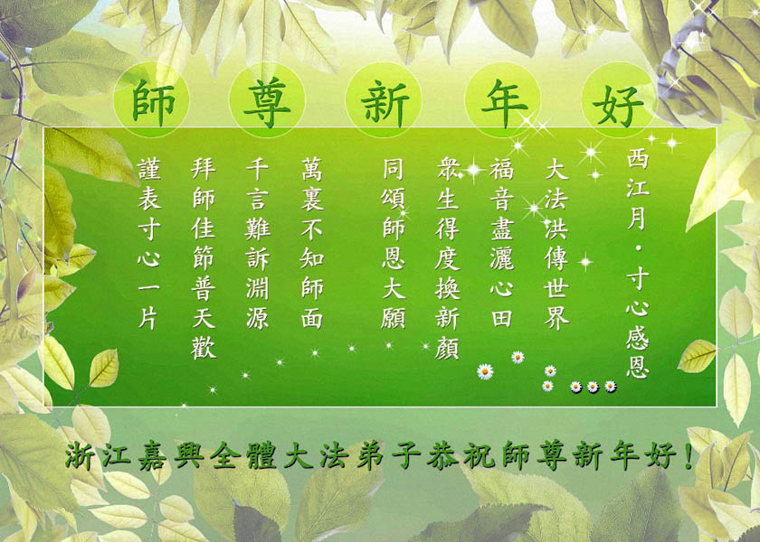 【明慧网二零零九年一月二十五日】 浙江嘉兴全体大法弟子恭祝师尊新年好!