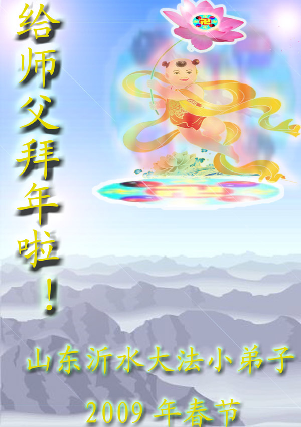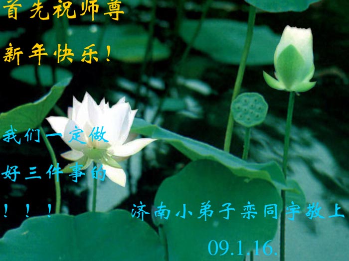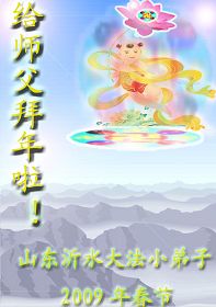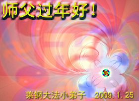 济南全体大法小弟子恭祝师尊新年快乐!师尊过年好!济南全体大法小弟子恭祝师尊新年快乐! 弟子一定做好三件事,不断提高自己的心性。抓紧学法、发正念,讲真相,救度众生。 二零零九年一月十九日