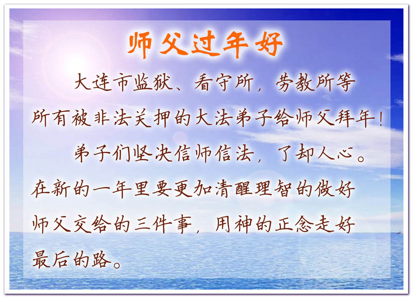 大连市所有被非法关押的大法弟子给师父拜年!师父过年好!
