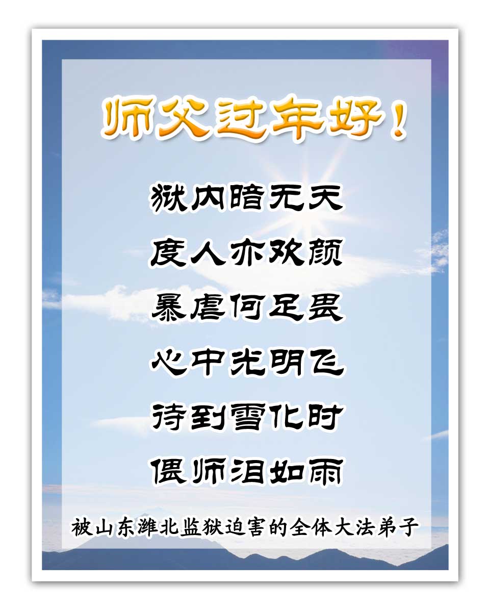 身在囹圄 心系众生 度人度已 回归不停 被山东潍北监狱迫害的全体大法弟子恭祝师父过年好!