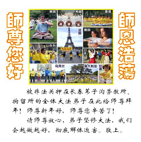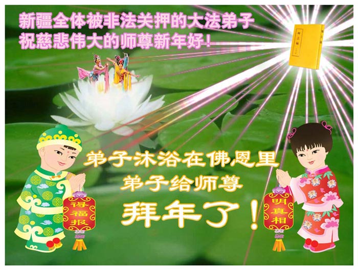 弟子沐浴在佛恩里,弟子给师尊拜年了!师尊新年好! 新疆全体被非法关押的大法弟子敬上 被非法关押在山东省第一监狱的大法弟子给师父拜年