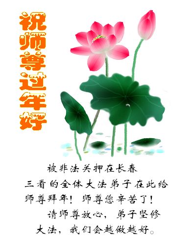 祝师父节日愉快! 被非法关押在吉林黑嘴子女子劳教所全体大法弟子恭祝师尊新年好!