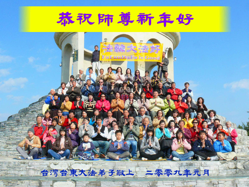 台南明慧学校的大法弟子与小同修一起向师尊拜年(己丑年)! 台湾台东大法弟子恭祝师尊新年好
