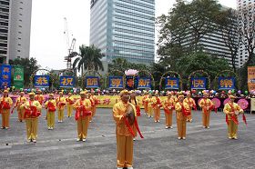 大法弟子腰鼓队表演,恭祝师尊过年好。 |