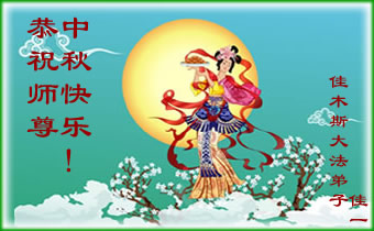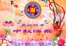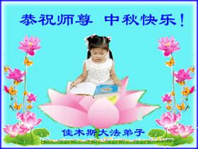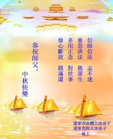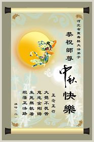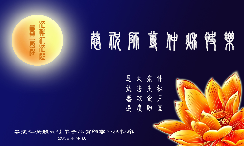 【明慧网二零零九年十月二日】牡丹江资料点大法弟子恭祝慈悲伟大的师尊中秋快乐!石家庄老年大法弟子恭祝师尊中秋快乐黑龙江宾县大法弟子恭祝师尊中秋佳节快乐! 黑龙江宾县大法弟子恭祝师尊中秋佳节快乐!宾县全体大法弟子正在全面升华,全面突破自我、向外找、感性认识等阻碍修炼的因素,正在形成一个整体向内修向内找的修炼环境,为更好的更快的救度众生清除障碍。大连大法弟子祝伟大的师尊中秋节愉快!我们决心以全力讲清真相救度众生的实际行动来回报师尊! 紧随师尊正法,正念灭尽邪恶。 不断修正自己,整体互相配合。 不为假相迷惑,排除一切干扰。 全力救度众生,兑现史前大愿。 大连马栏子大法弟子祝伟大的师尊中秋节愉快!大连辛寨子大法弟子祝伟大的师尊中秋节愉快!大连营城子大法弟子祝伟大的师尊中秋节愉快!大连沙岗子大法弟子祝伟大的师尊中秋节愉快!大连一大法弟子家庭学法小组祝伟大的师尊中秋节愉快!想念师尊 中秋佳节盼团圆, 渴望师尊把家还。 乱世纷扰事纷繁, 仍有邪恶在阻拦。 身陷囹圄志更坚, 早知师尊在身边。 正念正行消魔难, 讲清真相救众生。 自省执着来反观, 色气之心一扫光。 修正自己随师还, 师徒相会日不远。 济南全体大法小弟子恭祝师尊中秋节快乐!师尊好!济南大法小弟子恭祝师尊中秋节快乐!弟子一定做好大法弟子应该做好的三件事,学法修心,发正念,讲真相,抓紧救度世人。 济南全体大法小弟子 二零零九年九月二十日 中秋佳节将至,广州市越秀区一家大法弟子向最伟大的师尊问好我们一定按师父的要求走好最后的路。 湖北公安县住武汉大法弟子祝愿师尊中秋节好!师尊:您好!中秋节好! 弟子一定精進起来,做好三件事,随师父回家。 湖北公安县住武汉大法弟子 二零零九年九月二十日 阿坝州大法弟子恭祝慈悲伟大的师尊中秋快乐师尊的慈悲与救度是我们用任何语言与任何方式都无法形容和报答的!弟子们唯有踏踏实实每时每刻按照师尊的指引做好我们该做的每件事才是我们的使命与责任。 值此中秋佳节来临之际, 弟子们恭祝慈悲伟大的师尊中秋快乐, 弟子想念您! 愿能与师尊早日团圆! 阿坝州大法弟子 2009年9月20日 黑龙江省富裕县法轮大法弟子恭祝慈悲伟大的师尊:中秋快乐。徒想念 中秋团圆,徒儿想念。 秋去春来,天清云淡。 正念正行,光明已显。 深圳市宝安区及龙华片区的全体大法弟子祝愿慈悲、伟大的师尊中秋节快乐!在中国人民的传统节日----中秋佳节即将到来之际。我们深圳市宝安区及龙华片区的全体大法弟子怀着无比思念的心情,衷心的祝愿慈悲、伟大的师尊中秋节快乐!并向师尊问一声好!我们无比的感激师尊的慈悲救度。望着明月,我们盼望着早日与师父团圆。 在当前严峻的考验面前,我们一定牢记师尊的教诲,走好走正最后的正法之路,努力做好三件事,完成好自己的史前大愿。 2009\9\20 文登市大法弟子恭祝慈悲伟大的师尊中秋节快乐!宝鸡地区全体大法弟子恭祝师尊中秋快乐!河北香河大法弟子恭祝师尊中秋节快乐!朝城全体大法弟子祝师尊中秋节快乐古钟悠悠震天地,明月圆圆至佳节!中秋将至,大法弟子遥望他乡,思念师尊,盼与师尊共团圆。师尊昔日传法之景,历历在目,圣音犹在耳畔,刻骨铭心,大法法理指引弟子精進前行。 我们一定不负师恩,努力做好三件事,救度更多众生,助师正法,了却大愿。 弟子期盼师尊早归故土,相聚团圆,同度佳节!也盼神韵艺术团早日能巡演神州! 我们共同祝愿伟大师尊中秋快乐! 朝城全体大法弟子!合十! 二零零九年九月二十日 陕西省宝鸡市大法弟子恭祝慈悲伟大的师尊中秋快乐!师父,弟子想念您。在师父的呵护下,走过了十多年的修炼路,摔摔打打、跌跌绊绊,更多的是走在回归路上的快乐和幸福。越到最后的时刻,我越认识到大法的伟大,修炼的严肃,自身的不足。师尊的慈悲,常常使弟子泪如泉涌。请师尊放心,今后的修炼路上,弟子们一定会越最后越精進,修好自己,助师正法,救度更多的众生,兑现史前的誓约,完成自己神圣的使命。 全体天门大法弟子中秋节向慈悲伟大的师父致以问候尊敬的师父:您好!您辛苦了! “每逢佳节倍思亲”!在中秋这个传统节日即将来临之际,我们亿万法徒最思念的,就是我们慈悲伟大的师尊。 谢谢师父在远隔重洋的地方,时刻把我们大陆大法弟子放在心上。就在近期,师父在万忙中,一篇又一篇的经文发表给我们,让我们在做三件事上,更理智、更稳健。并帮我们救更多的众生。师父这种洪大的慈悲,弟子无法用语言表达。我们只有在师父的正确指引下,将人心都修去,尽最大努力去救度众生。最终达到与全球其他大法弟子一起,共同完成历史交给我们的任务,圆满随师还。 祝师父中秋节快乐,永远快乐! 全体天门大法弟子叩谢师父!合十。 2009年9月20日。 遂宁市全体大法弟子恭祝师尊节日快乐哈尔滨市香坊区一青年大法弟子代表全家恭祝师尊中秋快乐! 请师尊放心,弟子一定会走好最后的修炼路!河北省灵寿县大法弟子恭祝师尊中秋快乐石家庄大法弟子恭祝师尊中秋快乐山东临沂费县全体大法弟子恭祝师尊中秋节快乐八月中秋团圆节,大法众徒盼师归。助师正法救人急,一切尽在不言中。恭祝师尊中秋节快乐!山东临沂费县全体大法弟子叩拜师尊! 二零零九年九月二十一日 湖北小池镇某大法弟子向师父问好