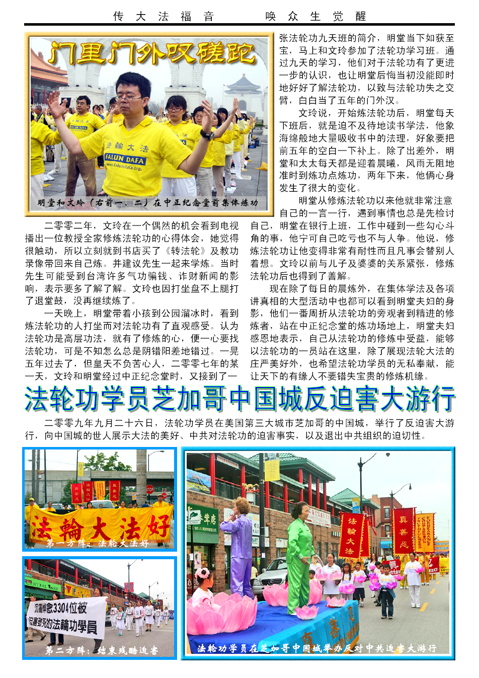 法轮功创始人获杰出精神领袖奖新竹市举办声援六千万人退出中共集会门里门外叹蹉跎法轮功学员芝加哥中国城反迫害大游行