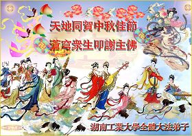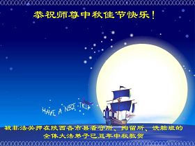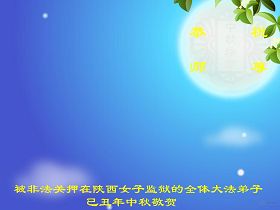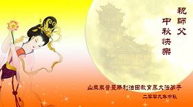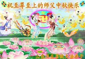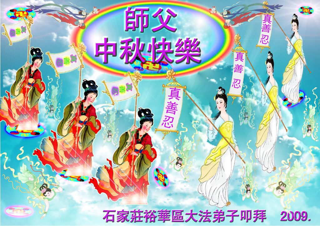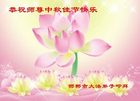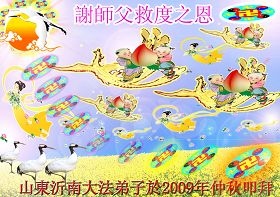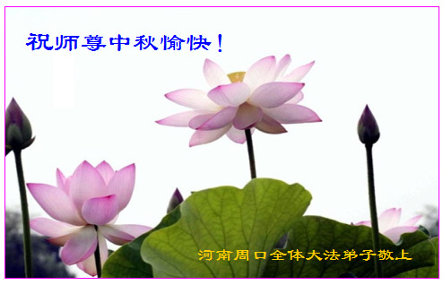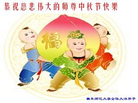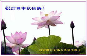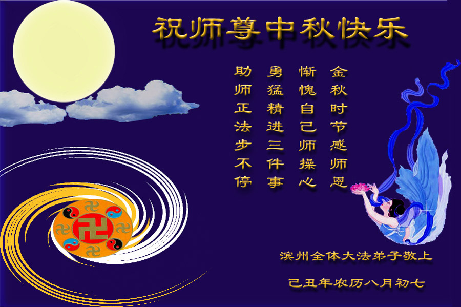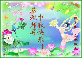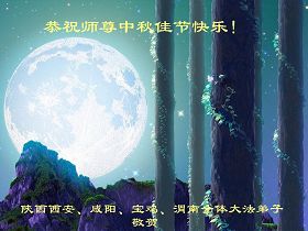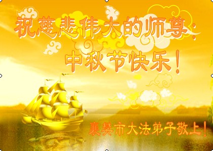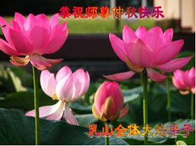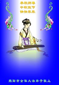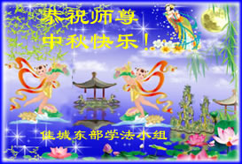 【明慧网二零零九年十月三日】湖北安陸大法弟子恭祝师尊中秋节快乐广东省揭阳市全体大法弟子祝师尊中秋快乐曲阜师范大学全体大法弟子恭祝慈悲伟大的师尊中秋节快乐山东东营胜利油田教育界大法弟子祝师父中秋快乐山东东营大法弟子祝师父中秋快乐金城大法弟子恭祝师尊中秋快乐!吉林省东丰县一家三口大法弟子祝师父中秋快乐!又一个中秋节到了,我们一家三口十分想念师尊。祝慈悲伟大的师父中秋节快乐!邪恶封网是封不住我们的。有师在,有法在,有我们正念在,助师正法,慈悲救度世人。 二零零九年九月二十六日 葫芦岛地区农村全体大法弟子衷心祝福慈悲伟大的师尊中秋节快乐!葫芦岛地区农村全体大法弟子叩拜; 谢师恩! 二零零九年农历八月初八 广东化州市大法弟子恭祝慈悲伟大的师父中秋节快乐!浙江台州全体大法弟子及家属祝伟大的师尊中秋节快乐!天津大港区全体大法弟子祝师尊中秋节快乐!师尊您好:又是一年中秋到。在中华儿女团聚的日子,弟子们万分想念师尊,盼与师尊早相聚。二零零九年九月二十六日 黑龙江绥棱全体大法弟子想念师父,中秋节向师父问好!莱钢全体大法弟子恭祝师尊中秋节快乐山东大法弟子祝慈悲伟大的师尊中秋节快乐!湖南长沙全体大法弟子祝师尊中秋快乐!弟子一定听师尊的话,坚定地走好最后的路。救度更多的众生,完成史前大愿! 河北省平山县全体大法弟子恭祝师尊中秋快乐!慈悲伟大的师尊: 您好。我们要更加珍惜与师父同在,与正法同在的机缘。多学法,修好自己,比学比修,找出差距,共同提高,形成整体。更加广泛的救度众生。不负“正法时期大法弟子”的称号,不负众生的希望。走正、走好这转瞬即逝的助师正法之路。 河北省平山县全体大法弟子跪拜合十 己丑年八月初八 河北省平山县一大法弟子全家恭祝师尊中秋快乐!慈悲伟大的师尊: 您好,我们要在这瞬间即逝、万古不遇的时间里,勇猛精進,做好三件事,救度更多的众生,走正走好最后的路,更加广泛的传播真相,兑现我们的誓愿。 全家人跪拜合十 河北省平山县一大法弟子全家 己丑年八月初八 慈悲伟大的师尊: 中秋节好,用您赐予的善念和智慧,把您呵护的小花培育的更加茁壮,开放的更加绚丽。恭祝师尊中秋快乐! 全家人跪拜合十 河北省平山县一大法弟子全家 己丑年八月初八 沈阳一家庭学法小组祝师尊中秋节快乐!山东省招远市全体大法弟子中秋节向慈悲伟大的师尊问好师父您好!师父您辛苦了!我们招远市全体大法弟子一定要在最后的时刻尽快找回昔日的同修,形成坚不可摧的整体,正念正行,跟上师父的正法進程,努力做好三件事,兑现自己的史前誓约。 招远市全体大法弟子 二零零九年九月二十六日 招远市一资料点同修祝师父中秋节快乐!我们一定会稳定的走好最后的路,请师父放心。 招远市全体大法弟子 二零零九年九月二十六日 山东兖矿集团、鄒城大法弟子恭祝慈悲伟大的师尊中秋节快乐重庆荣昌大法弟子的家人向慈悲伟大的师尊问好!恭祝师尊中秋佳节快乐!天津全体大法弟子恭祝慈悲伟大的师尊中秋佳节快乐! 我们会做好三件事,救度更多的众生。上海全体大法弟子恭祝慈悲伟大的师尊中秋节快乐!滨州全体大法弟子祝师尊中秋节快乐!邯郸市大法弟子恭祝师尊中秋快乐!日照一学法小组的大法弟子恭祝师尊中秋快乐!齐齐哈尔市富拉尔基区大法弟子恭祝慈悲伟大的师尊中秋节快乐!弟子想念您!长春大法弟子恭祝师尊中秋快乐,大陆大法弟子想念师尊!我们一定做好“三件事”,多救众生,兑现史前大愿,圆满随师还! 2009年10月3日 西安大法弟子祝师尊中秋快乐!天津市,河北区,河东区,大法弟子祝贺师尊中秋节快乐佳木斯大法弟子恭祝师尊中秋快乐学习经文感动我, 修己必须去执著。 一说就炸就是错, 色心不去不及格。 不救众生只修我, 决不能修成正果。 家庭环境得开拓, 清除污浊去天国。 佳木斯大法弟子 2009、9、23、 佳木斯大法弟子恭祝师尊中秋快乐中秋月圆在空中, 师恩浩荡宇宙中。 法轮大法溶心中, 弟子精進在法中。 救度众生出迷中, 功成圆满回家中。 佳木斯大法弟子 2009、9、23、 佳城大法弟子恭祝师尊中秋快乐修炼意志坚, 修心是关键。 天天学大法, 法中好过关。 誓约全兑现, 救人上法船。 法轮大法好, 人人都实践。 佳城大法弟子 2009、9、25、 佳城大法弟子恭祝师尊中秋快乐师尊语重心长, 说到弟子心上。 学法认清方向, 增加心胸容量。 同修真心相帮, 救人慈悲善良。 溶入整体高尚, 整体铸就金刚。 佳城大法弟子 009、9、25、 佳木斯一众生恭祝师尊中秋快乐中秋敬师尊, 众生报师恩。 退了党团队, 人人有好运。 心中大法存, 生活有精神。 学生成绩好, 大人事事顺。 一颗真诚心, 拜谢救命人。 佳木斯一众生敬上 2009、9、25、 佳木斯大法弟子恭祝师尊中秋快乐佳城东部学法小组全体大法弟子恭祝师尊中秋快乐八月十五中秋节, 千言万语道声谢。 恭祝师尊中秋好, 跪谢主佛的关切。 组成小组学法热, 自我观念得放弃。 救度众生很迫切, 圆满天国的世界。 佳城东部学法小组全体大法弟子 2009、9、25、 佳城大法弟子恭祝师尊中秋快乐十年正法路, 弟子不怕苦。 时时和处处, 师尊慈悲护。 弟子修成神, 师尊在苦度。 师恩大如天, 难用语言述。 佳城大法弟子 2009、9、25、 佳木斯教育大法弟子恭祝师尊中