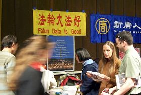 【明慧网二零零九年二月十八日】美国加州首府沙加缅度华人新年联谊会二零零九年二月十四日在加州大学举行。这是当地每年一次最大的华人社区活动,由十几个华人团体共同筹办。法轮功(又称法轮大法)学员应邀参加了联谊会,同往年一样,再次将真相及美好祝福带给华人同胞及其他族裔的与会者。 法轮功学员在沙加缅度华人新年联谊会上传播真相 |