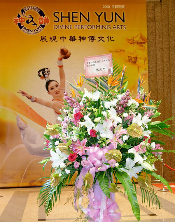 马英九总统致贺花篮,祝贺美国神韵艺术团演出成功 |