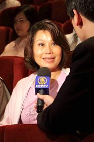 让他印象最深刻的是舞剧《迫害中我们屹然走在神的路上》,演出中表现出法轮功在中国大陆受到共产党的迫害,人权、自由等普世价值被践踏,使他非常不忍:“修炼者秉持的‘真、善、忍’的精神使我感动,后来主角被迫害致死,上天去了,那一幕给我一种非常真实的感觉。” 方仁惠觉的声乐家的歌声,还有每一个团员的表现都很自然、很真实,他从歌词里感受到人生的真谛:“人本来就是来时空空、去时空空,法轮功追求‘真、善、忍’的道德,在舞台上表现的功夫非常感人,使我想去学法轮功。” 方仁惠进一步表示,观赏节目以后感觉人都是善良的:“应该要珍惜法轮功表现的‘真、善、忍’,法轮功的思想原谅了那些迫害者,使我非常感动。” 资深演艺人员:把中国传统美德、高尚情操发扬光大 资深演艺人员张璃敏观赏了神韵演出后兴奋的表示,神韵传达了中国文化的美德与情操,“把中国传统文化的孝顺、报国等美德,高尚的情操发扬光大。”  资深演艺人员张璃敏 |