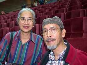 张璃敏表示演出令她很感动,“让最我感动的是舞蹈,他们的造诣很深的,还有编舞、排舞呈现出的舞台效果非常好。” 最让她惊讶在国外长大的年轻舞蹈演员,能这么深入的了解中国的艺术、文化,表现出这么优秀的舞蹈,“而且借着这个舞蹈的演出,把中国的文化传扬出去。” 一位国外长大的张璃敏的亲友不曾看过表现中国文化的演出,他表示有这个机会应该来看,“神韵传达了一个对神的尊敬,并且对生死的豁达,对人生的一个严肃的态度。” 他认为布景非常漂亮、非常华丽,服装也设计的很好,他说:“最重要的是,在背后一定有一个很好的指导老师。” 水彩画教授:为传统注入新精神 师范大学美术系退休教授李昆培偕同夫人,观赏神韵国际艺术团在台北的首场演出后表示,“表演注入新的精神,又有传统的文化精神,看起来非常生动。”  师范大学美术系退休教授李昆培与夫人 |