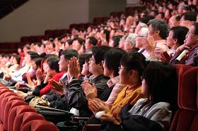 【明慧网二零零九年二月二十六日】(明慧记者王清汉台湾台北报导)神韵国际艺术团二零零九年二月二十五日晚在台北市国际会议中心的首演,感动了大台北地区艺文界人士。台北县树林市美术协会理事长简惠美赞叹:“这是一个很完整的艺术呈现,难怪能够走遍大江南北。” 二零零九年二月廿五日神韵艺术团在台北首场演出满场。 |