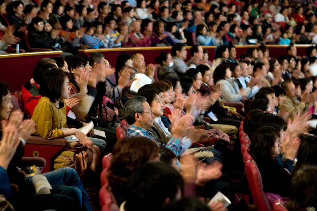 陈春蓉赞不绝口的说:“很轻松、很感动、第一次看到这样的节目,看到这些演员基本功这么好!配合着呼吸动作正确又优美、轻盈,太优美了。”她话还没说完,又向先生要了面纸擦拭着感动的泪水,频频说道:“很感动!看到佛就很感动,非常精致、华丽!太美、太感动了。”