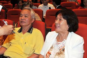 朱宏昌赞神韵演出的节目内容令他很触动:“我在思考,我们都是学艺术的,学音乐的,音乐跟舞蹈是分不开的,都是艺术的一环。刚刚有几个节目,比如法轮功学员被迫害、劝人为善,都会让人感觉触动心弦。” 他感动的表示:“每一个节目都有她要展现的内容,劝人为善也好或是其他想要展现的,每一个节目都有她的主题,我觉得这很不错,有时看的蛮感动的,我想很多人看了体会会很深。” 客家文化基金会董事长:感化人心 世界客属总会高雄市会、高雄市客家文化事务基金会董事长钟新富和夫人观赏神韵高雄首场演出后感动的表示:“人性的光明面被阐扬出来,感觉非常好。”  世界客属总会高雄市会、高雄市客家文化事务基金会董事长钟新富和夫人观赏神韵高雄首场演出 |