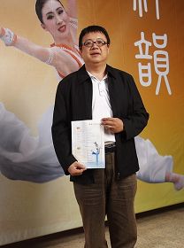 他进一步说:“我们能够看到这一场表演,把五千年来的特性灌输在这个舞台上,呈现在我们的眼前。而且她(指神韵)把一个中华,华夏的大民族,不管是从平民直接到宫廷的,还有一些属于我们历史上所记载的,都把它呈现在舞台上。演出非常的生动,每个演员都非常的敬业,真的是很不简单的一个演出。” 吴甲明认为神韵演出展现一种祥和的气氛,他说:“我相信以今天这么多的观众能够这么的踊跃,首先是大家一进场那种守秩序的角度来看,自动自发有一个很有纪律的一种感觉,是很大的一个特色,人与人之间有一个很平和相处的感受。” 吴甲明表示:“经过这一场观赏神韵之后,在往后对于民族文化特性这方面,还有文化艺术的推广上,我想我必须要加紧脚步努力才能够有一番的作为。” 他还开心地说:“我一定会跟我的亲朋好友们分享,然后推荐他们不要错过这个机会(神韵演出)。” 水墨画家:神韵演出太神奇了! 大陆著名工笔重彩画家、身为湖北美术学院中国画系系主任的李峰观赏神韵演出后直呼:“太神奇了!”他表示:因为我们画水墨国画的人,画画最高境界就是:气、韵、生、动。有些画的美是超过那个画面本身还有一些在形象之外的,或许我们会讲说那是一种灵性、灵气。 “今天看到这个表演就看到这个感觉,气、韵、生、动,那个东西我相信应该是天界的品质,我这个凡人今天终于感觉到我进入了那个仙界,所以我说太神奇了。” 艺术家:神韵给人新的视野 从事艺术造型、设计工作的画家张天荩表示,神韵给人一个新的视野,他感动的说:“节目里面天人之间那种自信跟做一个人的骄傲,我觉得我整个血脉贲张,而且那种力量是稳稳的,慢慢的,非常有那种张力。” 张天荩表示,神韵精彩的节目内容是一种很新鲜的展现,让眼睛发亮,他说:“我们有很悠久的历史,但是我们已经遗忘了我们有这么美好的一个历史过程,透过这个节目的演出,我们突然之间血液里面好象是滋长这种对身为一个人,尤其是身为一个唐人来讲,那种对生命的充实的感动,以前好象很少去发现到我们也是这样的一个人。”