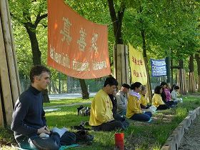 一对骑自行车路过的德国夫妇,特意下车,走到横幅前观看,当得知,修炼法轮功的人们在中国遭受迫害时,他们立即表示同情,并了解共产极权对人的信仰和传统文化的压制。 居住在附近的诺埃乐•库再尔女士开车经过时,看到这些人在中领馆前打坐,特地停下车来了解情况。她在接受采访时说,“通过一旁法轮功学员的介绍,我知道了这是一种基于‘真、善、忍’原则的修炼。我觉得这对每个人来说都很重要,而且对整个社会也很重要。” “我们知道在独裁统治下,人们没有思想的自由,它不让人们遵循这样的原则。但全世界更多的人是有这样的自由的。”从事生态方面的工作的她最后表示,非常高兴知道到了真相,以后她自己会继续更多了解情况。