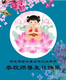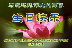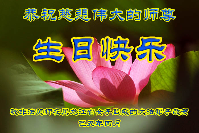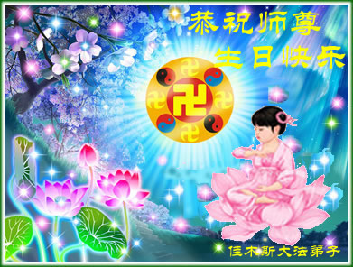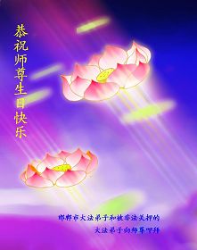 并请允许我代表浠水被非法关押的大法弟子向师尊祝贺师尊生日快乐! 牡丹江地区大法弟子祝师父生日快乐!