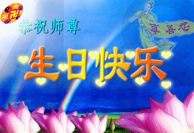 在十几年的正法修炼中无时无刻不感到师尊的慈悲呵护和点化,唯有不断精進,不负师尊厚望。 明光地区大法弟子祝师父生日快乐!!!