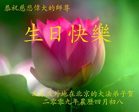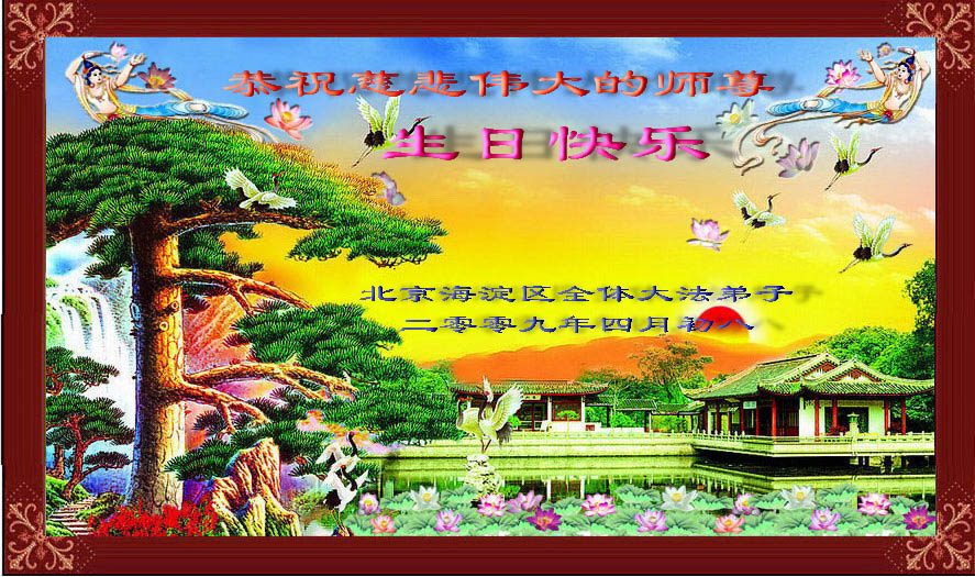 北京海淀区全体大法弟子恭祝慈悲伟大的师尊生日快乐!