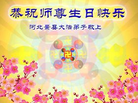 我们以前还存在很多不足,但今后我们一定精進实修做好大法弟子的三件事,不负师恩!再次祝师尊生日快乐! 河北辛集大法弟子祝师父生日快乐!