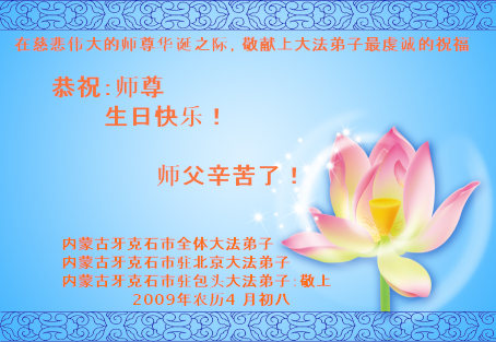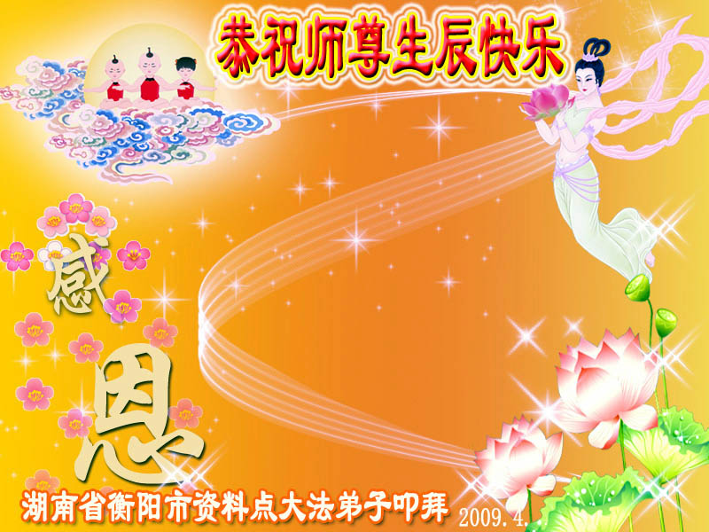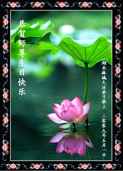 【明慧网二零零九年五月十三日】湖南省衡阳市学法小组大法弟子恭祝师尊生日快乐! 河北沙河市大法弟子恭祝师尊生日快乐!