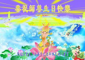 师父您辛苦了,我们学法小组恭祝伟大的师父生日快乐! 辽宁阜新大法弟子恭祝伟大慈悲的师尊生日快乐!