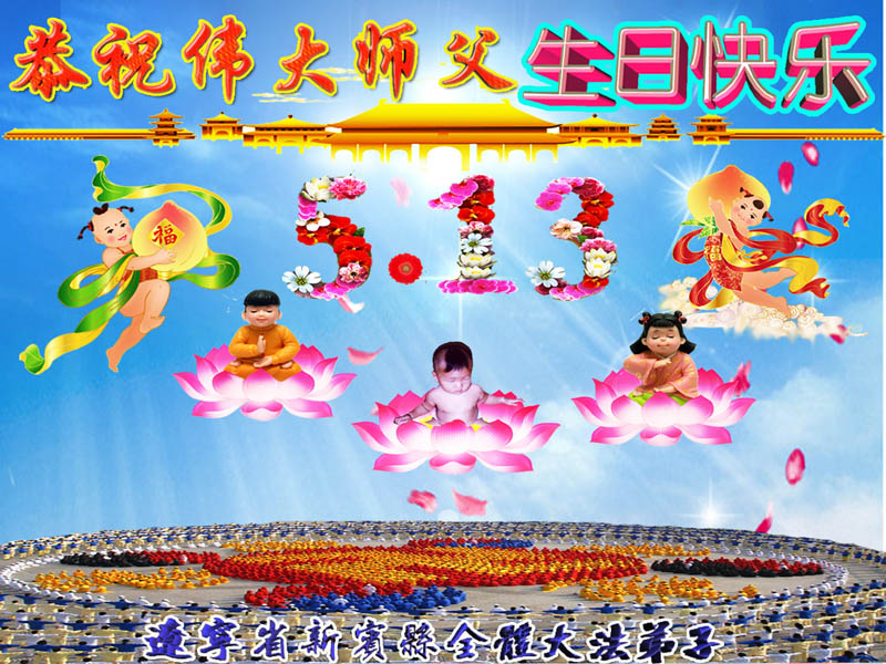 又是一年5.13,天上人间齐欢庆,共祝伟大师尊生日快乐!我这不争气的弟子辜负了师尊的慈悲呵护、慈悲苦度,让师尊操心了!我在剩下的不多的宝贵时间里一定抓紧时间做好三件事,不辜负师尊的慈悲苦度,兑现自己史前的誓约! 河北省井陉县全体大法弟子恭祝慈悲伟大的师父生日快乐暨祝贺世界法轮大法日!