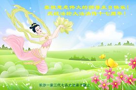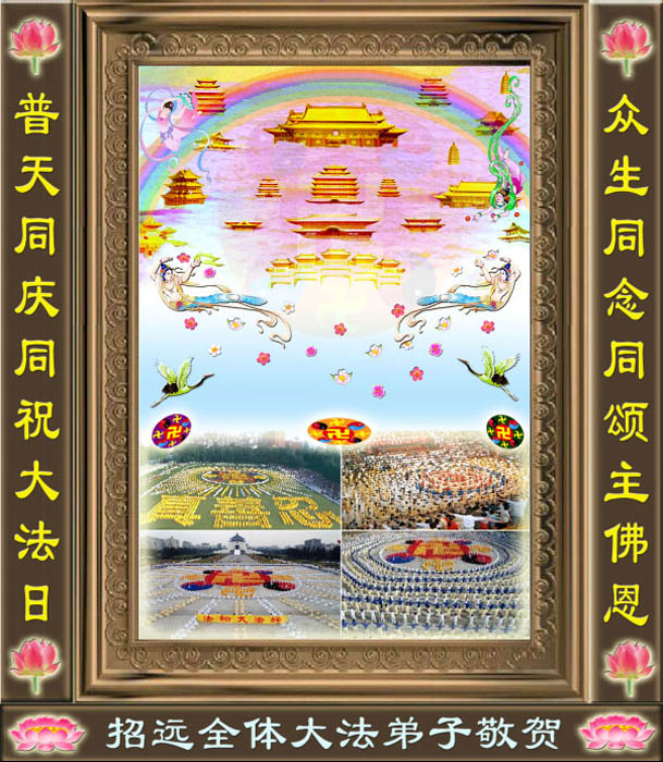 遥拜师尊泪沾襟, 无以为报浩荡恩。 精進实修多救度, 它日莲开苍宇新。 长春全体大法弟子祝慈悲伟大的师尊生日快乐并贺法轮大法洪传世界十七周年!