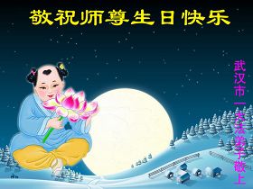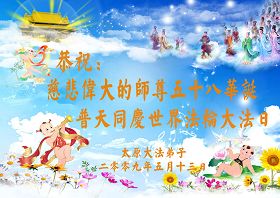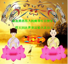 在慈悲伟大的师尊华诞和第十届法轮大法日来临之际,我一家人恭贺师尊生日快乐!法轮大法洪贯苍宇!!! 云南省全体大法弟子恭祝慈悲伟大的师父生日快乐!