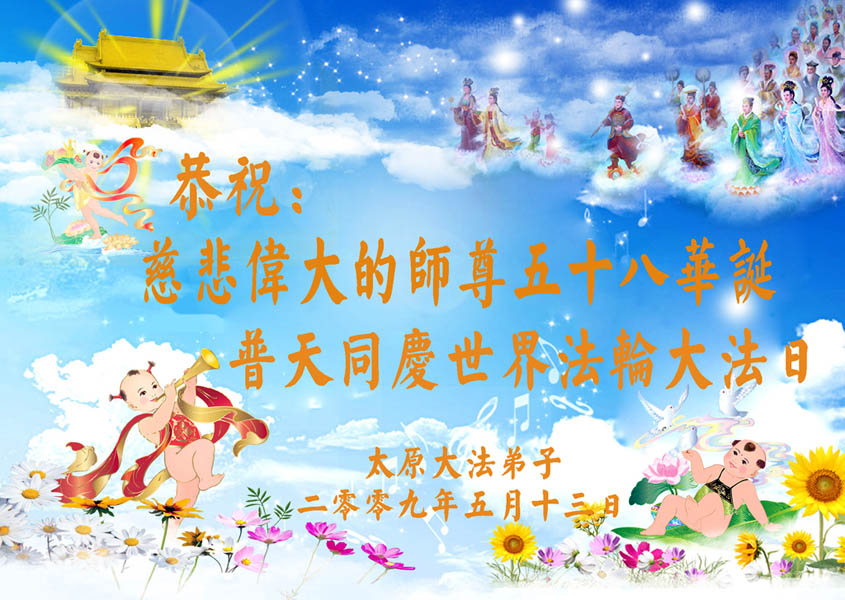 山西省太原市全体大法弟子向师尊问好!恭祝慈悲伟大的师尊生日快乐!普天同庆5.13世界法轮大法日!