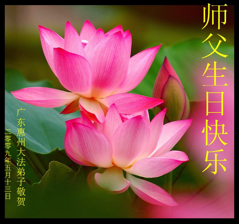 弟子给师尊添了很多麻烦,请师尊原谅!弟子希望能做好三件事,希望众生能随师尊回家!希望师尊欣慰!谢谢师尊的慈悲救度! 重庆大法弟子代家人向师尊祝贺! 二零零九年五月九日 湖北十堰全体大法弟子恭祝师尊生日快乐暨世界法轮大法日!