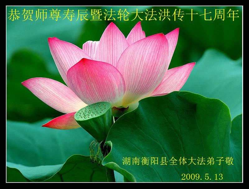 湖南衡阳县全体大法弟子恭祝师尊寿辰暨法轮大法洪传十七周年!