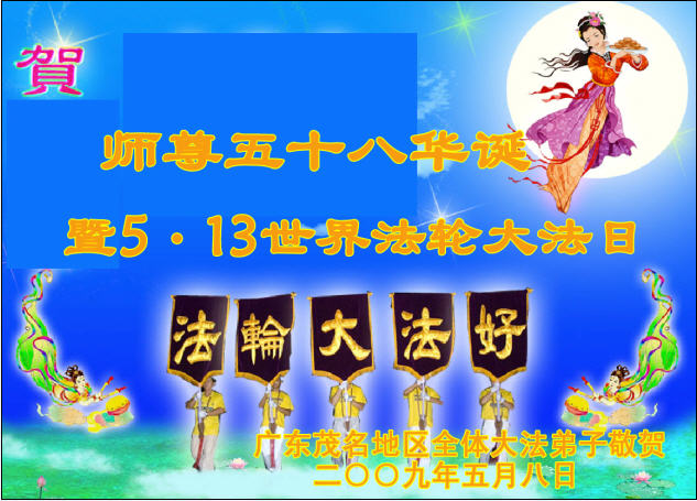 广东茂名地区全体大法弟子恭贺师尊华诞暨世界法轮大法日!