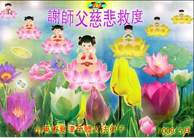 师尊您好!师尊您辛苦了!叩谢师尊慈悲苦度! 吉林省通化市大法弟子敬上 2009年5月8日 北京丰台区大法弟子祝师父生日快乐!法轮大法洪传世界十七周年!