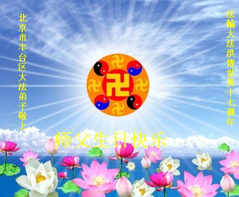 北京市一协调小组大法弟子恭祝慈悲伟大的师尊生日快乐!普天同庆世界法轮大法日!