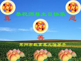 师尊辛苦了,我们莱州教育界大法弟子一定更加精進,让师父放心。 大陆大法弟子在这普天同庆之日,恭贺师尊生日快乐!