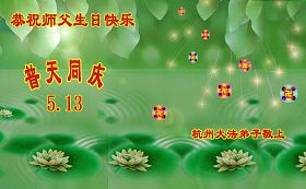 杭州大法弟子恭祝师父生日快乐!普天同庆世界法轮大法日!