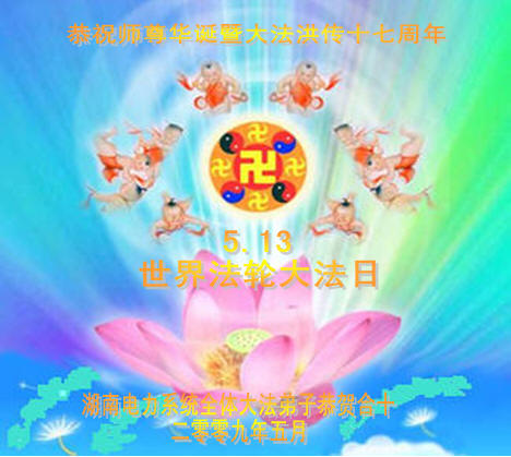 湖南电力系统全体大法弟子恭祝师尊生日快乐暨法轮大法洪传十七周年!