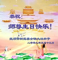 大陆政府机关大法弟子恭祝慈悲伟大的师尊生日快乐!