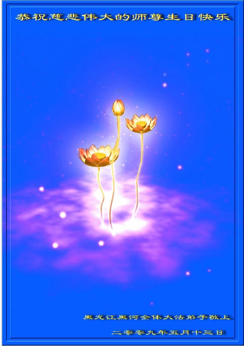 黑龙江黑河全体大法弟子恭祝慈悲伟大的师尊生日快乐!