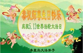 五月十三日,在这个不平凡的日子里,我们大陆大法弟子非常想念师父!五月十三日是大法洪传世界的日子,也是师父的生日!在这里,我们同时请师父放心,我们在做好三件事的同时不忘修好自己,真正做到无条件的向内找,精進!精進!再精進!向师父交一份合格的答卷。 保险行业的大法弟子向慈悲伟大的师尊问好!恭祝师父生日快乐!