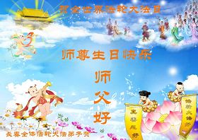 在法轮大法日这一重要、美好的日子,向师父致以最崇高的敬意!并恭祝师父生日快乐! 广东公安系统大法弟子警官并家人 大陆一学法小组大法弟子恭贺师尊华诞!