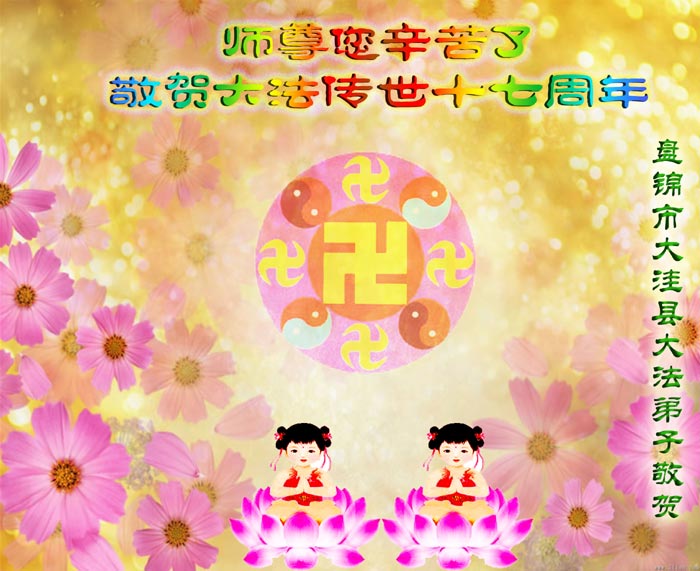 盘锦大洼县大法弟子庆贺大法洪传十七周年!