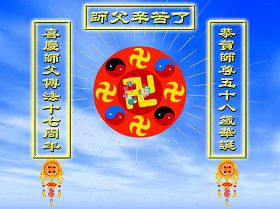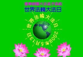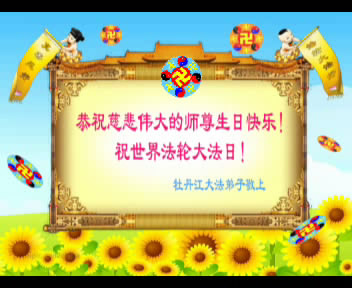 | 【明慧网二零零九年五月十三日】 世界各地大法弟子恭贺师尊华诞 下载(5.4MB) 牡丹江大法弟子恭祝慈悲伟大的师尊生日快乐!祝世界法轮大法日!