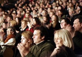 | 【明慧网二零零九年六月二十八日】(明慧记者黄凯莉阿根廷布宜诺斯艾利斯报导)风靡全球的神韵艺术团于二零零九年六月二十七日首度登陆南美洲,于当地时间晚上九点,在布宜诺斯艾利市著名的Auditorio Belgrano剧院,拉开了在阿根廷和智利共十六场演出的首演的帷幕。 虽然演出前,中共使馆试图阻扰当地民众前来观看神韵,但是,当晚的首演满场,不少当地华人前来观看,他们纷纷表示,能够在阿根廷看到如此高水准的演出,真是难得。这台晚会展现了深厚的中华文化,非常美。  六月二十七日,阿根廷布宜诺斯艾利市神韵晚会的观众 |