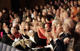【明慧网二零零九年六月二十八日】(明慧记者苏青综合报道)二零零九年六月二十七日晚,在布宜诺斯艾利斯市Auditorio Belgrano剧院,神韵拉开了在南美洲首演的帷幕。美妙华丽的服饰、金碧辉煌的天上仙境及创意无限的中国古典舞编舞,给阿根廷观众带来全善、全美的中华神传文化。在场来自社会各界的观众们无不感到欣喜与陶醉。 布宜诺斯艾利斯市Auditorio Belgrano剧院里,观众对神韵演出报以热烈掌声 |